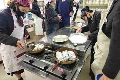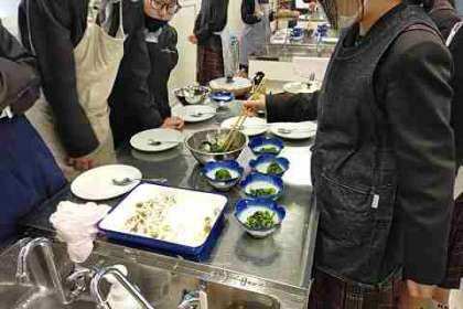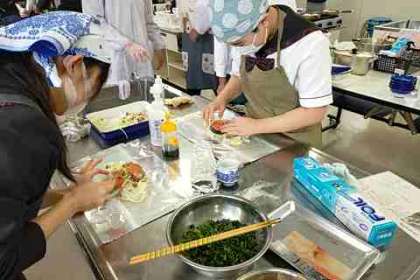 ○調理実習で 鮭のホイル焼きとほうれん草のおひたしをつくっています。