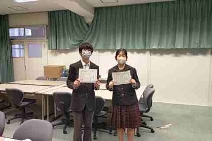 ○吹奏楽部の三人がソロコンテストで金賞を受賞されました。