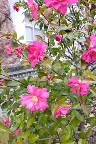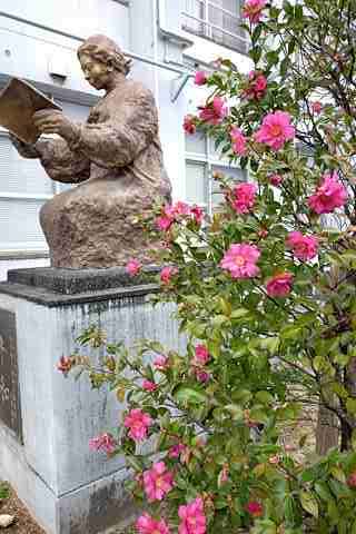○夜間学級の玄関横にある山茶花が満開になりました。