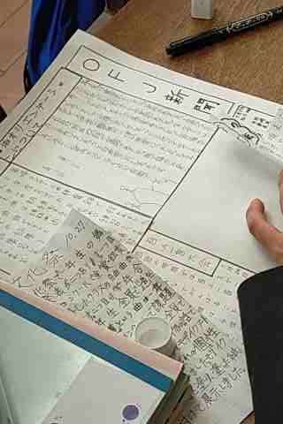 ○班ごとに新聞作成をしていました。