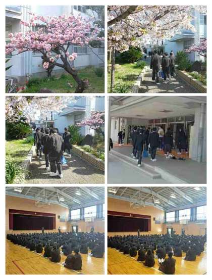 ○毎週水曜日の朝に1年生の学年集会があります。この日は早めに登校し、体育館にクラスごと整列します。
