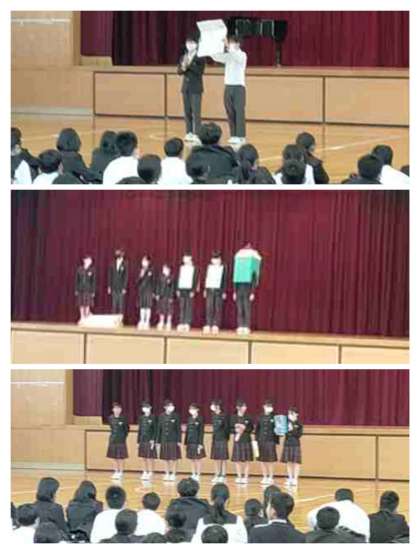 ○明日からの1年生の部活動見学を前に、6時間目に部活動紹介がありました。上級生から、活動内容や活動日程、練習風景の紹介がありました。