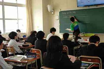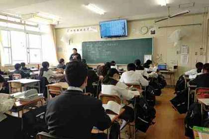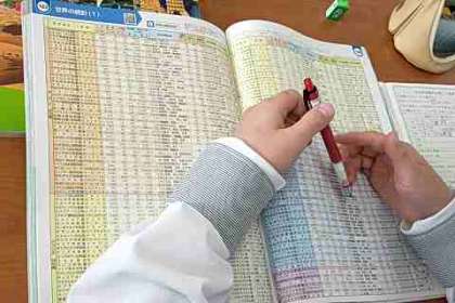 ○英語はローマ字で学校名や住所を記しています。社会では、地図帳から世界の国々の特徴を考えています。