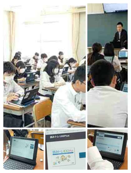 ○タブレットを使って英文のリーディングタイムを測ったり、問題を解きます。