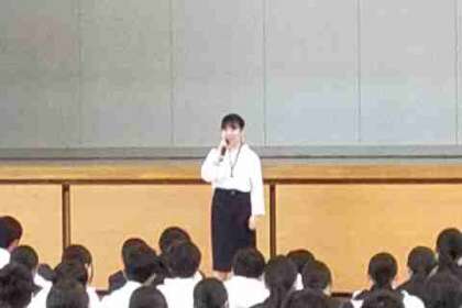○教育実習生の辰己さんと實久さんからお話がありました。