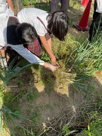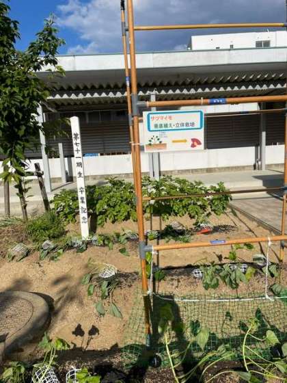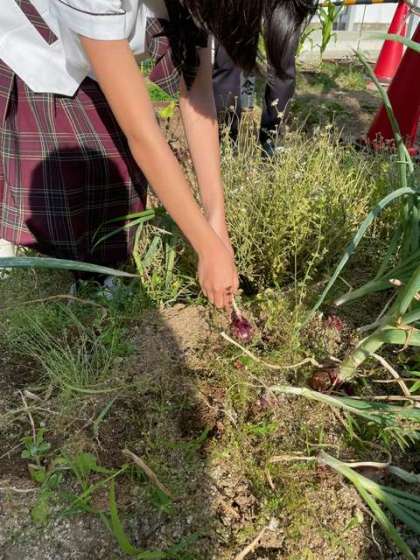 中庭に大きく育った玉ねぎとニンニクを収穫しました。次はサツマイモを植えたみたいなので秋が楽しみですね。