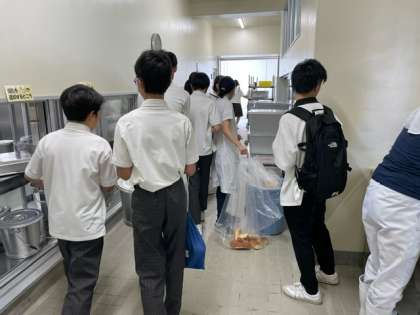 本校の卒業生が高校の課題のために給食の取材に来ていました。