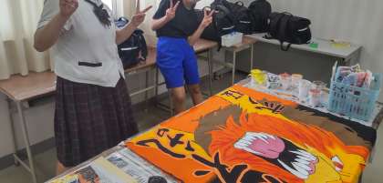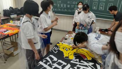 学級旗作り4日目、ずいぶん完成に近づいてきました!