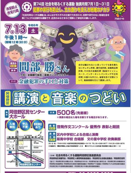 ○「社会を明るくする運動」の一環として「講演と音楽のつどい」を開催します。本校生徒も出場します。