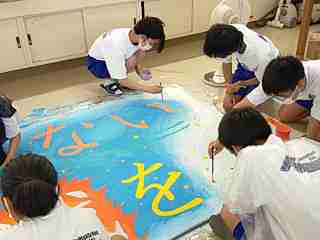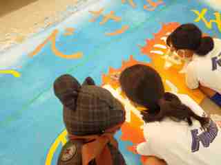 ○体育大会に向け横断幕の制作を行っています。本日で完成予定です。