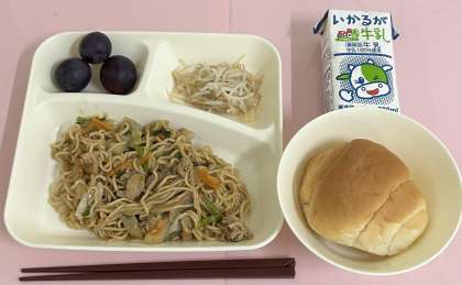 今日の給食は、オイスターソースを使用した中華風の焼きそばです。