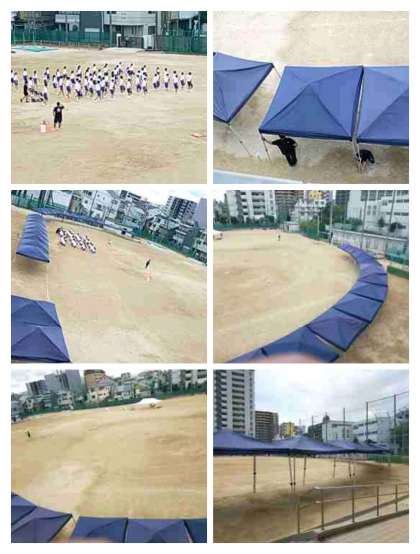 ○できる範囲で準備も初めています。運動場にテントを張りました。