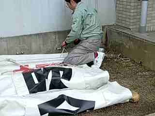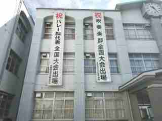 ○12月に全国大会に出場する吹奏楽部とバレー部のMくんの応援に校舎に懸垂幕がかけられました。