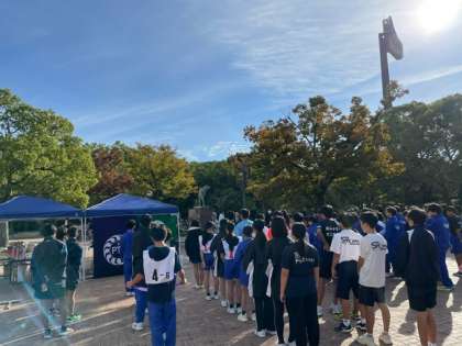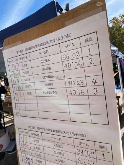 長居公園で阿倍野区中学生親善駅伝大会が開催されました。文の里は男女とも3チームずつ参加しました。