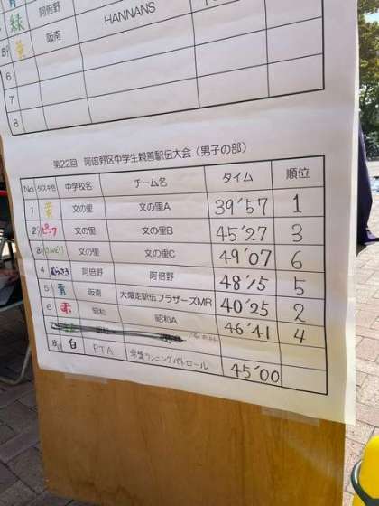 結果は女子、男子共に一位文の里Aチームと大健闘でした。
