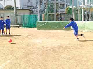 ◯楽しそうにキックベースをしています。