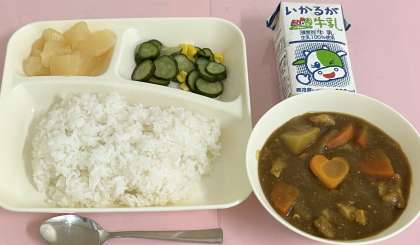 レバーはくせのある食べ物ですが、今日の給食では、しょうがやにんにく、セロリを使って食べやすくしています。