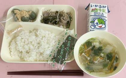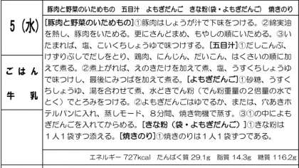 給食のよもぎだんごは、うるち米、もち米、よもぎから作られています。