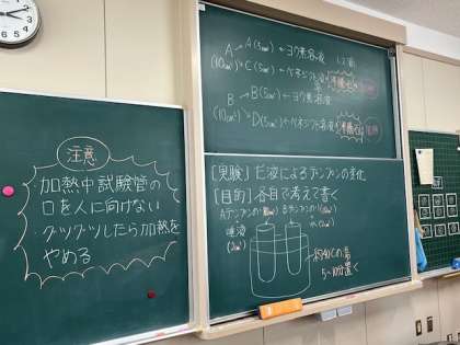 火も扱うし、割れ物のガラス(試験官)も使用する実験でしたが、先生の話をしっかりと聞いて行うことができました。