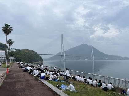 海と多々羅大橋を眺めながら、みんなでお弁当を取りました。