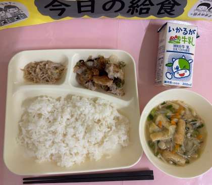 給食で使っているツナ缶の材料は、まぐろと綿実油、食塩です。まぐろはキハダマグロという種類を使っています。