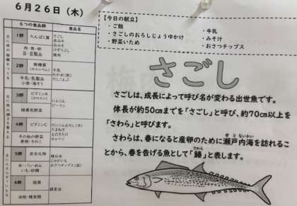 今日の給食の「さごしのおろしじょうゆかけ」は