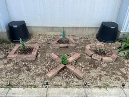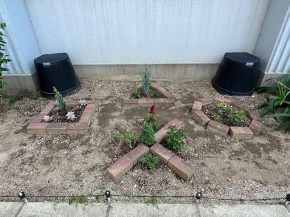 玄関前の一角に、コントローラー型の花壇が出現しています。