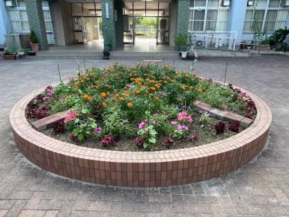 玄関前の円形花壇。