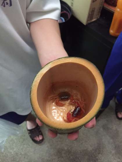 朝から川遊びをして蟹をとりました。竹を割ったり自然を満喫しているようです。