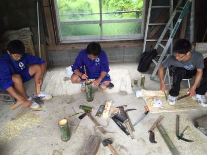 今日はいもり採りと竹トンボ作りを楽しみました。綺麗に飛んでました。