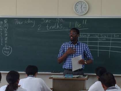 1つの嘘と2つの真実の英語文をつくり、みんなで嘘を見抜くゲームです。