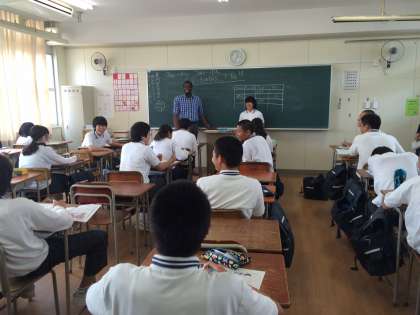 4時間目の3年生英語の授業です。CーNETのジャーメイン先生です。