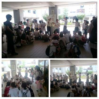 授業体験終了後、玄関ホールに部活動ごとに整列し、上級生の指示のもと活動場所に移動しました。