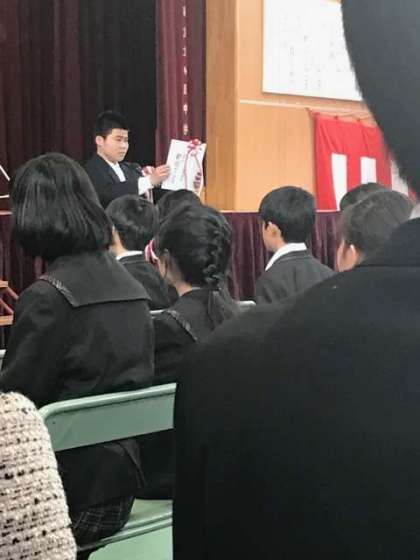 新入生代表がしっかりとした口調で初々しく喜びことばを言ってくれました。それを受けて在校生を代表して生徒会長が先輩らしく落ち着いて歓迎なことばで迎えてくれました。