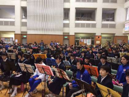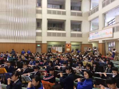 今日は合奏練習のみですが、生野中学校の玄関ホールをお借りして行われました。