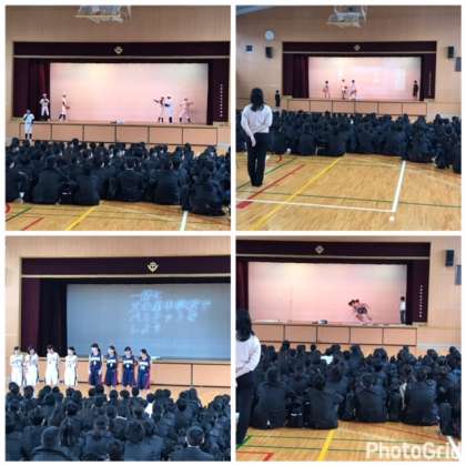 写真1枚目は野球部、男子バスケ部、女子バスケ部、陸上部。2枚目は女子ソフトボール部、水泳部、男子バレー部、女子バレー部、ラグビー部です。