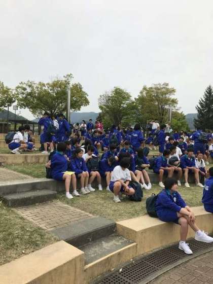 お弁当を食べ学年全体写真を撮った後、修学旅行委員の指示で各地域に別れバスに乗車して農家に向かって出発しました。