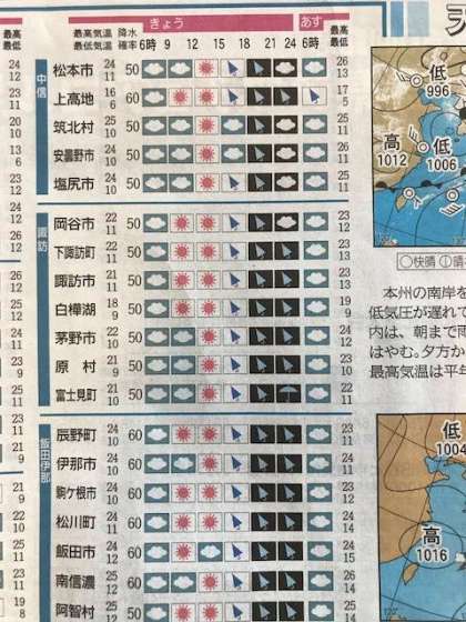朝食後の報告会で民泊先からの緊急連絡は無く全員無事に2日目を迎えてます。と報告が有りました。写真は本日の宿泊先の、よしの亭、地元の信濃毎日新聞の飯田市の天気予報、川の写真は天竜川でラフティングのゴール地点になります。しなの亭の真下です。