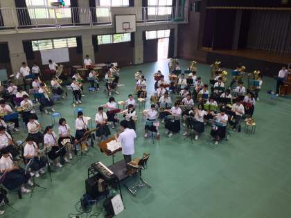 午前中はパート練習で仲を深め、午後からは暑い中、体育館での合奏練習。