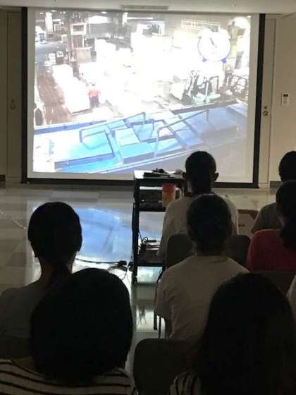最後は、市場の展示ルーム。昔の市場と15年前に建て替えた現在の市場の模型を見てみんなで市場の紹介ビデオ見て見学は終了です。さてこの後はお昼を食べます。