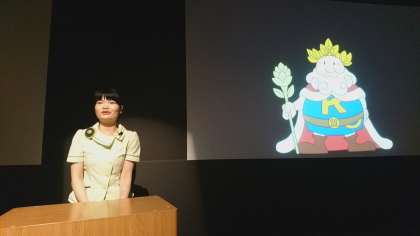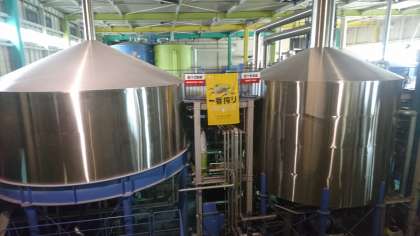 キリンビールの工場内見学ガイドさんに、ビールが出来上がるまでの全工程を、説明いただきました。モニターに映っているのは、キリンビール神戸工場のビールの神様「ガンブリヌス王」です。