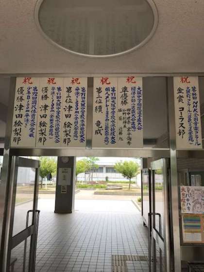 夏休みまでの部活動などの成果です。大阪市大会は優勝、大阪府大会は3位以上を掲示しています。ここに掲示されなかったけど、みんなよく頑張っていました。これらの頑張りを次のステージでの糧に努力してください。また来校の折に校舎入口に掲示しています。ゆっくりご覧ください。
