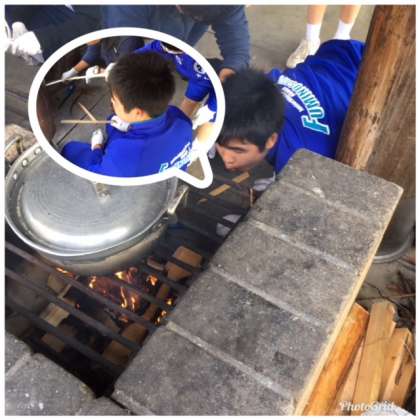 カレー作り奮闘中。煙たいのを我慢して、美味しいカレーを目指して、、、頑張れ??