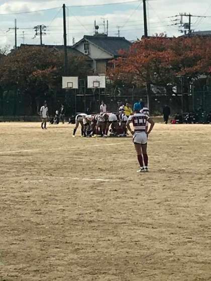 晴天の中、茨田北中で標題の大会が11時にキックオフしました。前半は一進一退、7対5文の里リードで折り返しました。