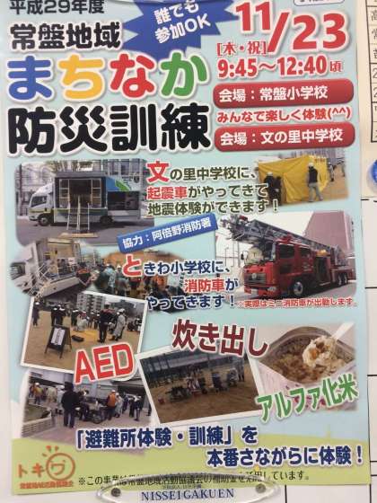あす11月23日(祝木) 本校と常盤小学校で 常盤地区「まちなか防災」が行われます。