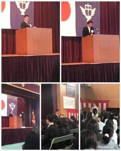緊張の面持ちで72期生が入場し、入学式が始まりました。コーラス部の部員が応援してくれて、それぞれの斉唱から一連の流れで式が進行しました。