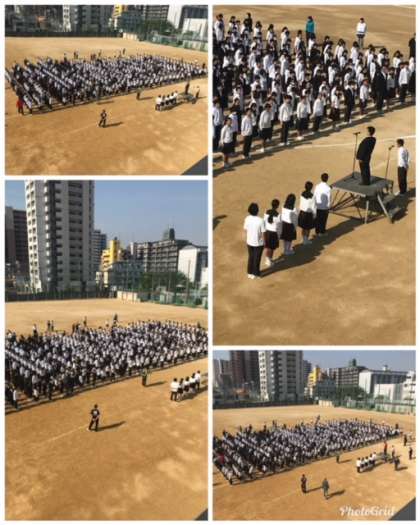今日は2018年度初めての全校集会でした。全校集会は運動場で行いますが、1年生が初体験。並ぶのに少し時間がかかりましたが、予定の時間に終わることが出来ました。二、三年生がキビキビ動くので一年生もそれに習って並ぶのが上手く行ったのかなぁ?流石二、三年生。