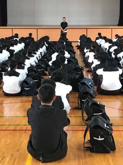 少年自然の家に行きます。今日の5時間目は最後の確認と心構えの学年集会でした。 班で協力して登山やカレー作り、クラス、学年で企画している室内オリンピックなど、協力することの大切さを知り班、クラス、学年の団結力を高めて欲しいものです。天気予報はあまり良くない予報ですが、チーム72の気合で雨を吹き飛ばしましょう。
