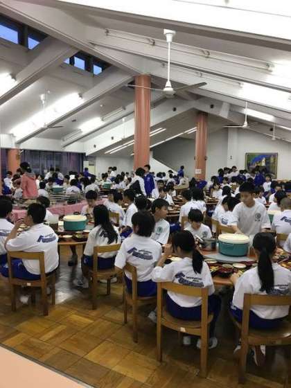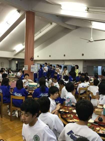 時間通りにお風呂も終わり、登山で腹ペコの皆んな!大きな声で『いただいま〜す』