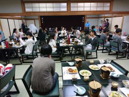 入浴もすみ、夕食の時間となりました。みんな、腹ペコのようで。しっかりと、夕食にとびついてました。